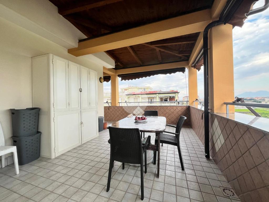 Il cespite, ubicato all'ultimo piano di uno stabile servito da ascensore, è composto da un'ampia e luminosa zona living, perfetta per momenti di relax e convivialità, cucina abitabile, tre spaziose camere da letto, due bagni e un balcone terrazzato con pratico cucinino, ideale per pranzi e cene all’aperto. Completa la proprietà un meraviglioso terrazzo di copertura, perfetto per godersi momenti di relax. Completano l'immobile un box auto di proprietà e un posto auto assegnato.